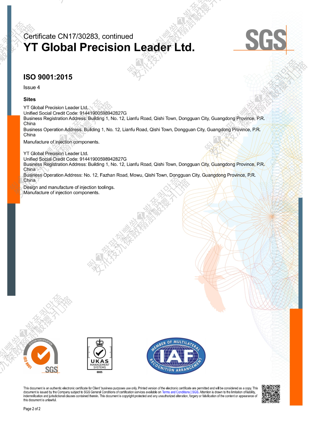 YT China has implemented a quality management system compliant with ISO 14001:2015, ISO 9001:2015, ISO 13485:2016, and ISO 45001:2018.